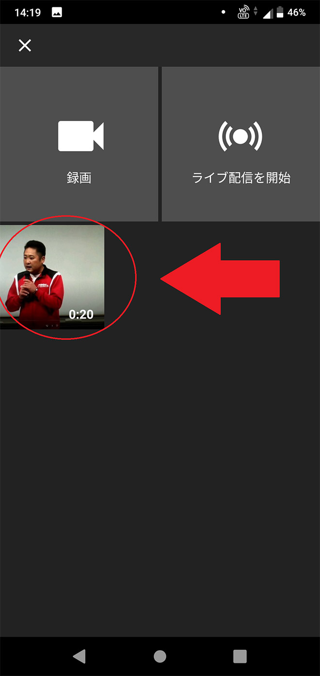 b.この画面になったら、アップしたい動画をタップします。