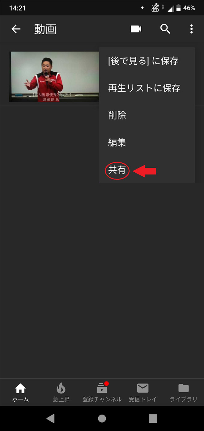 d.アップロード処理が完了したら、動画タイトル横の「縦3点」をタップし、