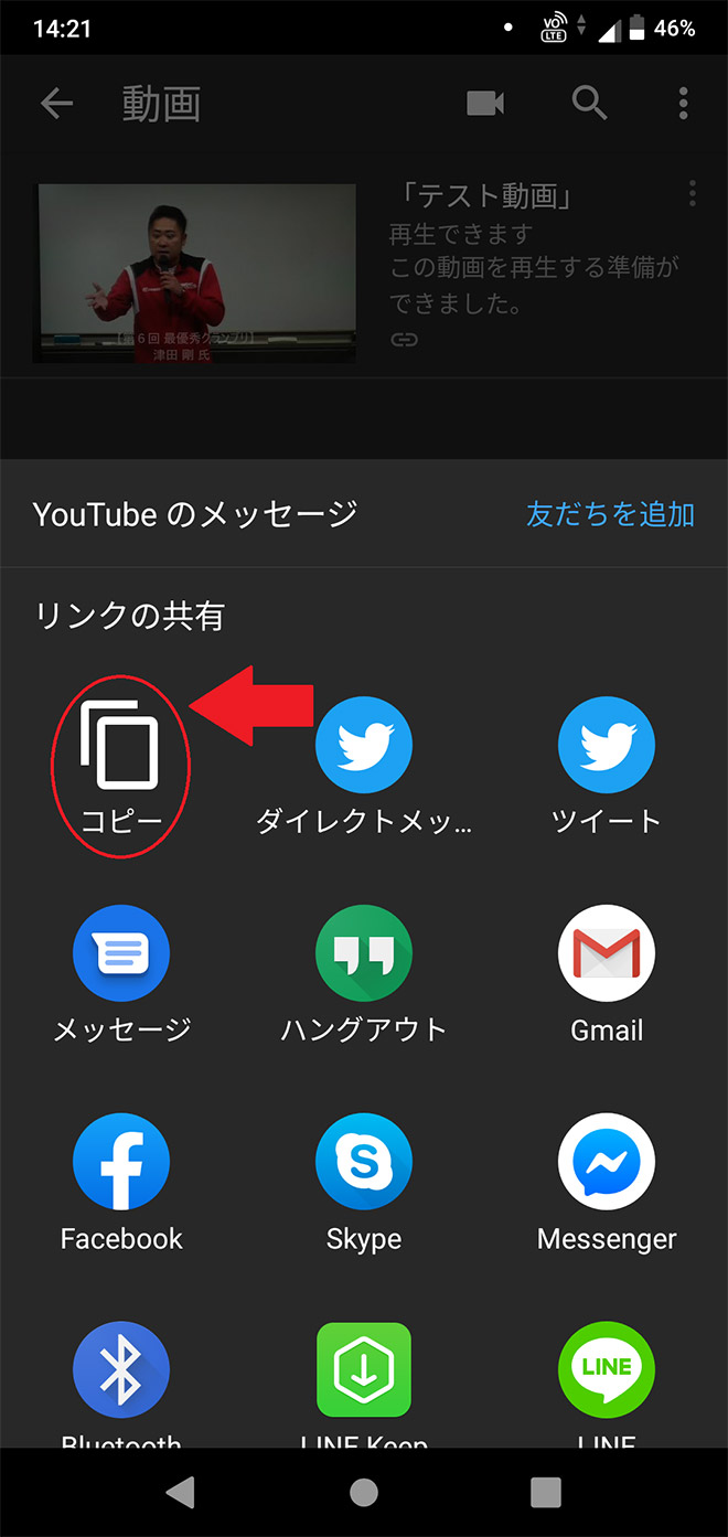 e.そうしたらこのような画面が表示されるので、「コピー」をタップしてURLを取得します。