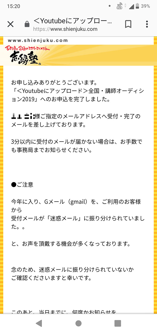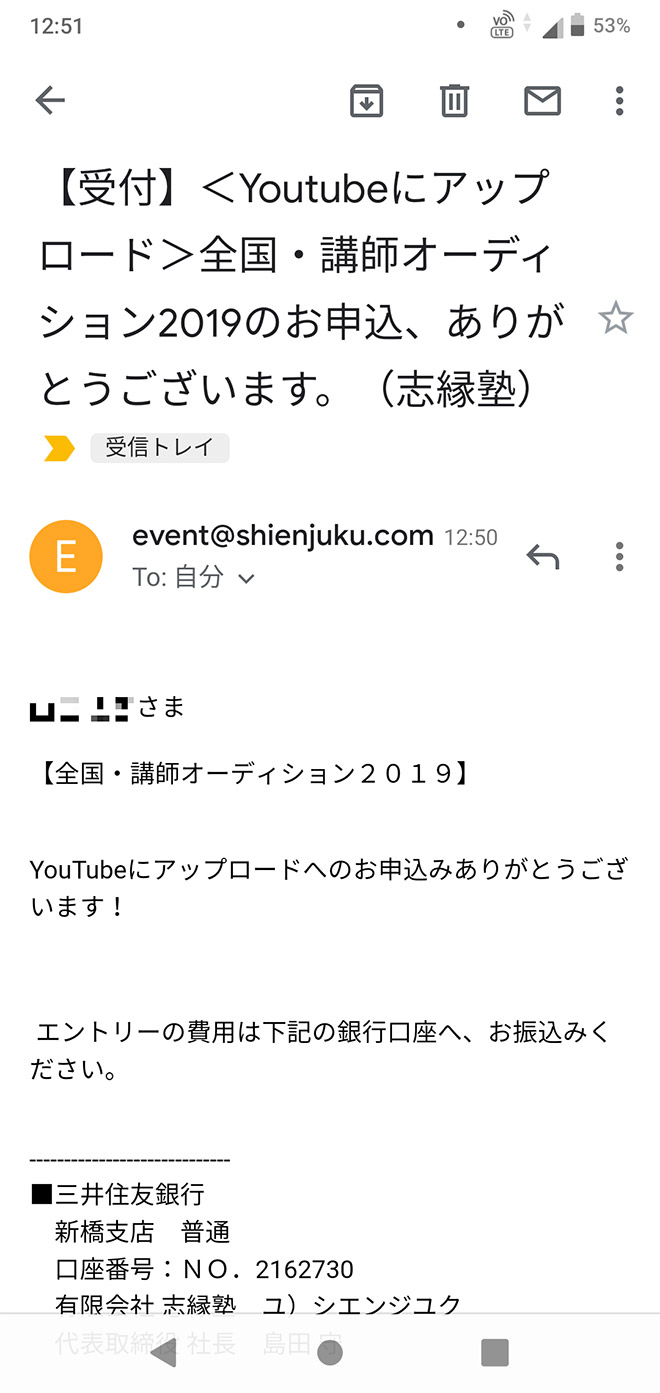 申込の完了後、このような受付メールが届きますので、ご確認ください。