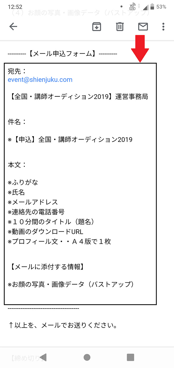 宛名(event@shienjuku.com)と件名はこのメールに記載されている通りです。